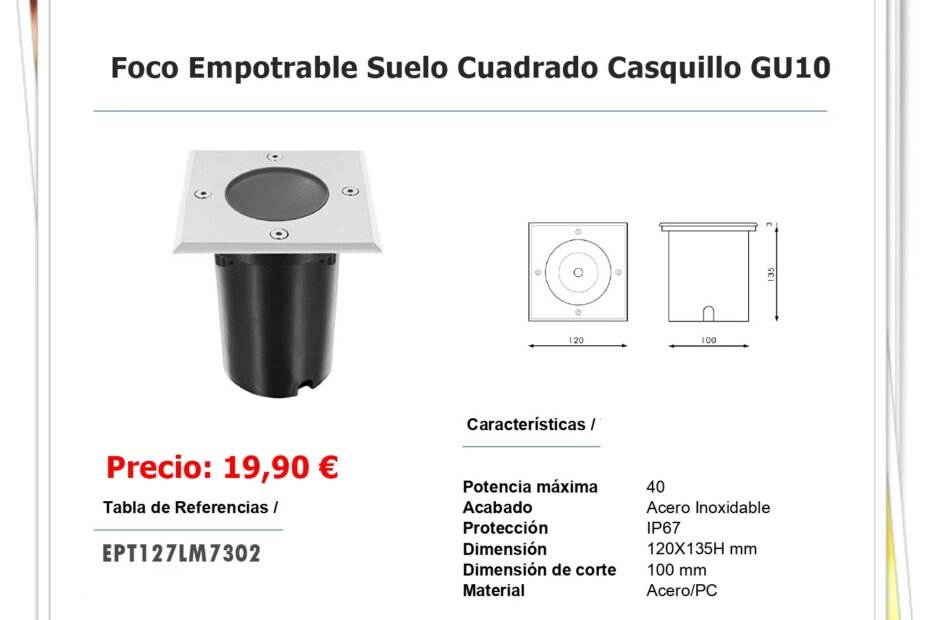 Foco Empotrable Suelo Cuadrado Casquillo GU10