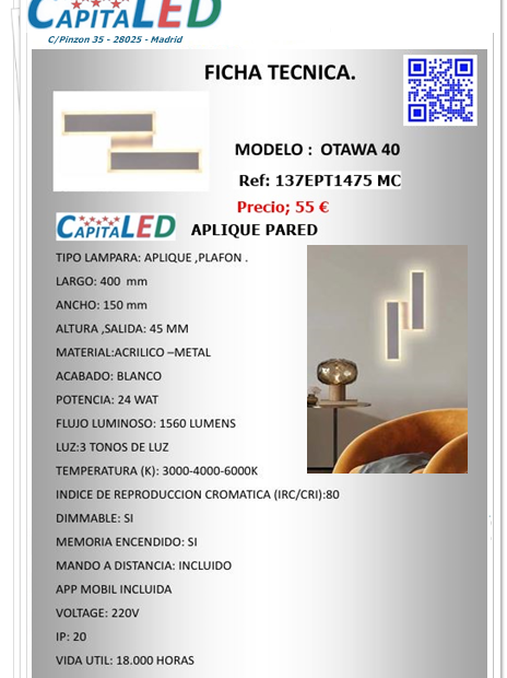 Aplique Pared Otawa40 CCT
