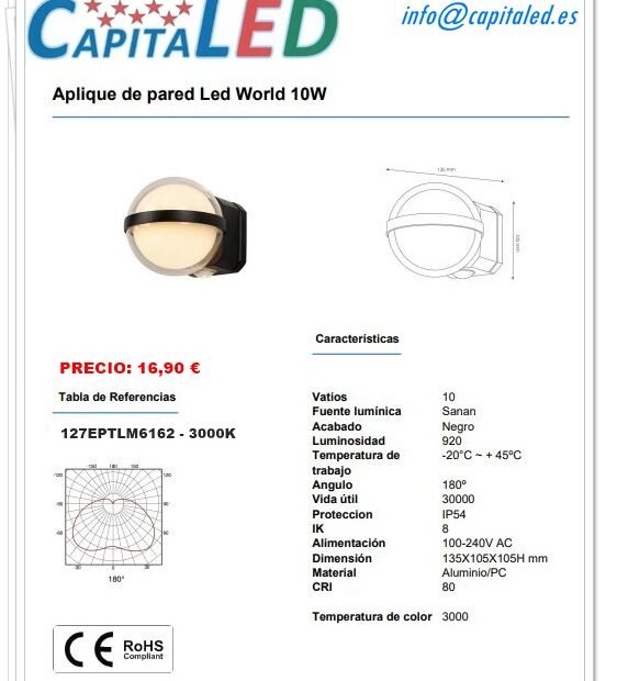 Aplique Pared Led World 10W