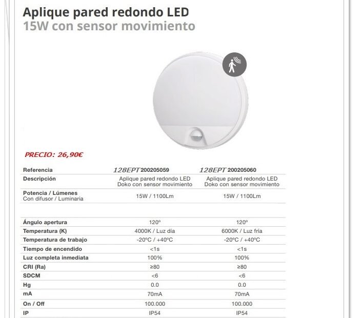 Aplique Redondo Led con Sensor