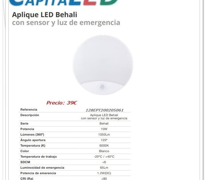 Aplique Led Behali con Sensor