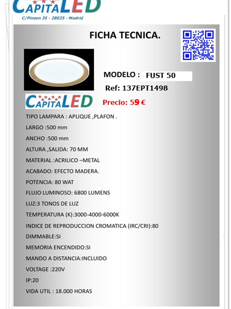 Plafon Fust 50 CCT + Mando
