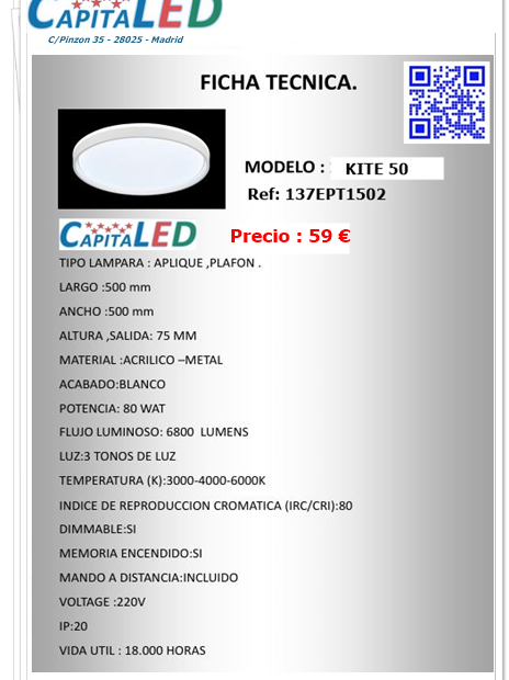 Plafón Kite 50 CCT + Mando