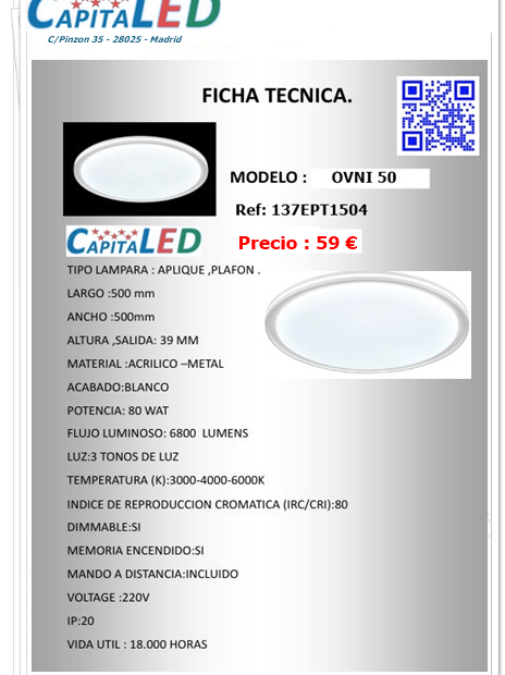 Plafón Ovni 50 CCT + Mando