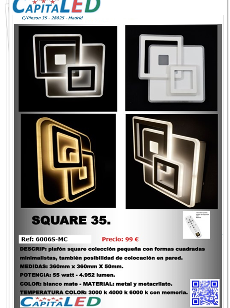 Plafón SQUARE 35 CCT + Mando