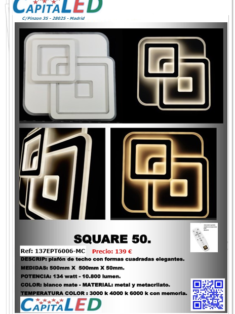 Plafón SQUARE 50 CCT + Mando