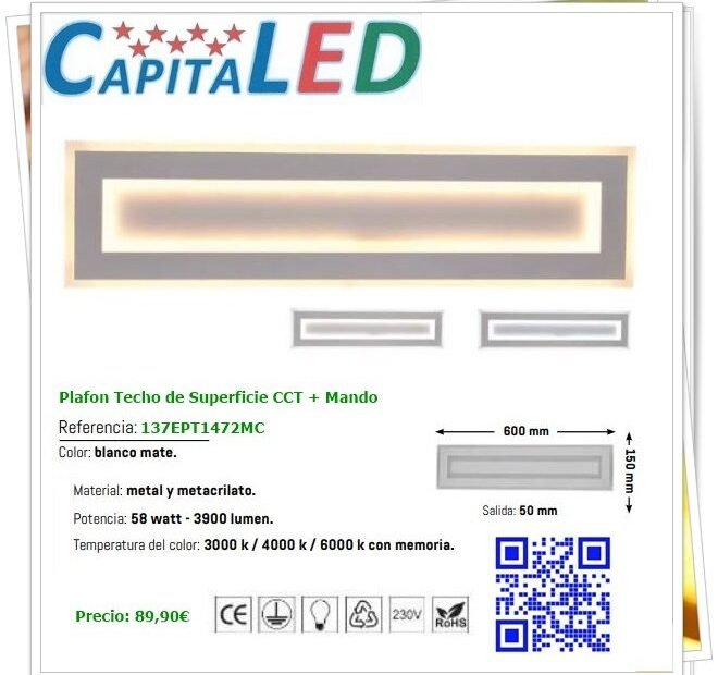 Plafon de Techo Led 600x150mm CCT