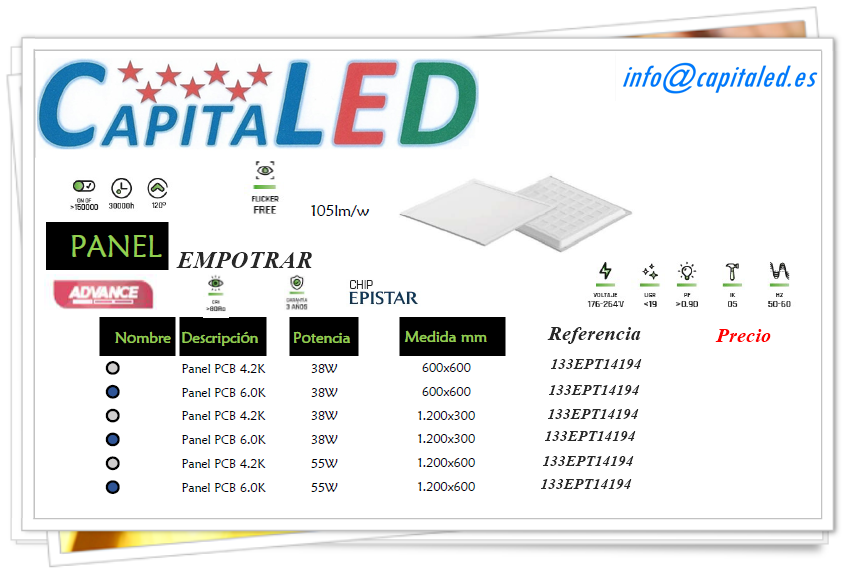 Panel Empotrar 36W 55W