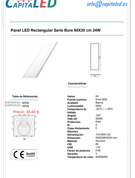 Panel Empotrar 60 x 30 Cm 24W