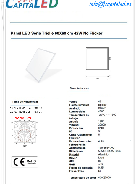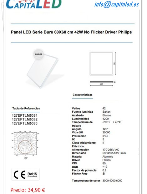 Panel Empotrar 60 x 60 Cm 42W