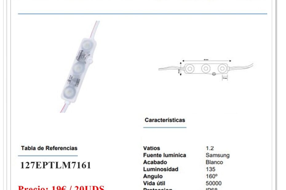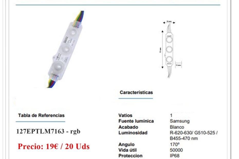 Cadena de 20 Módulos de 3 Led SMD Samsung 12V DC 1W