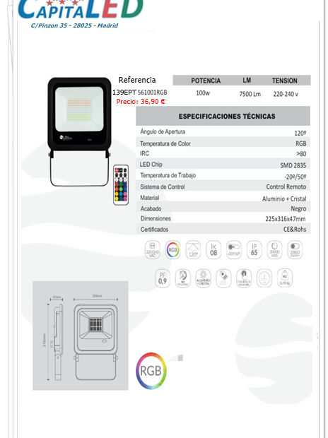 Proyector Led 100W RGB SMAR