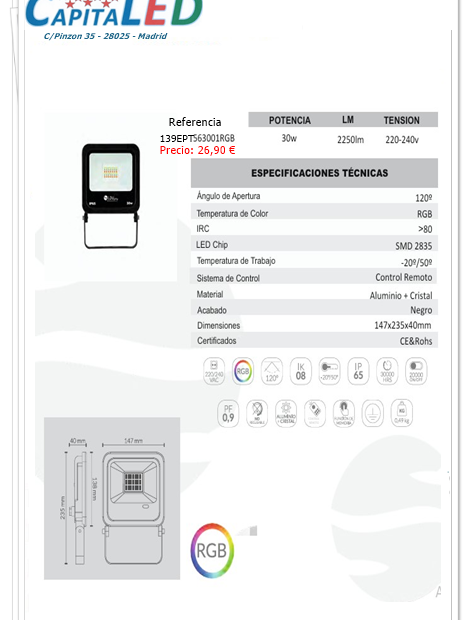 Proyector Exterior RGB 30W