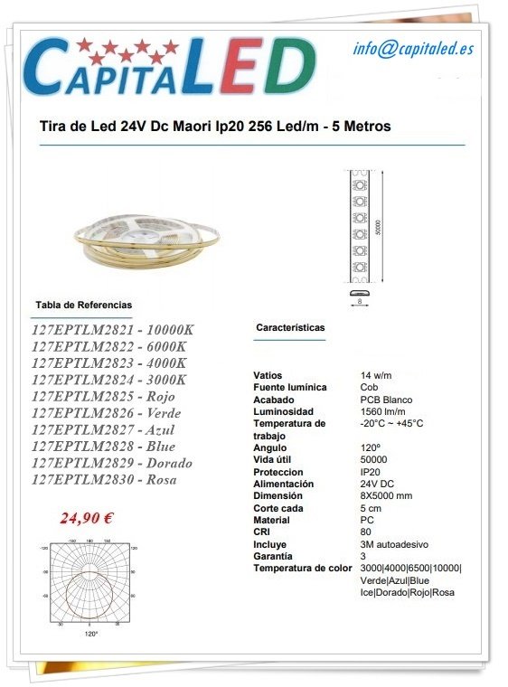 Tiras Led Cob 14W 24V 5mts