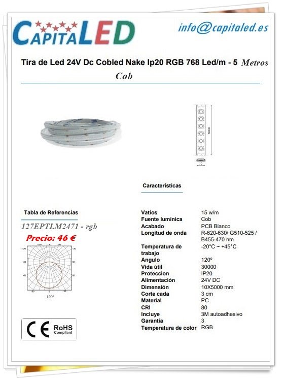 Tiras Led Cob RGB 15W 24V 5mts